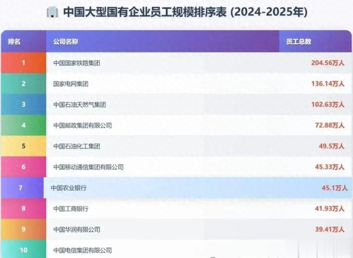 根据百度百科数据,国铁集团2025年的最新员工总数是204.56万人,相当于一座中等规模地级市的城区人口数量。