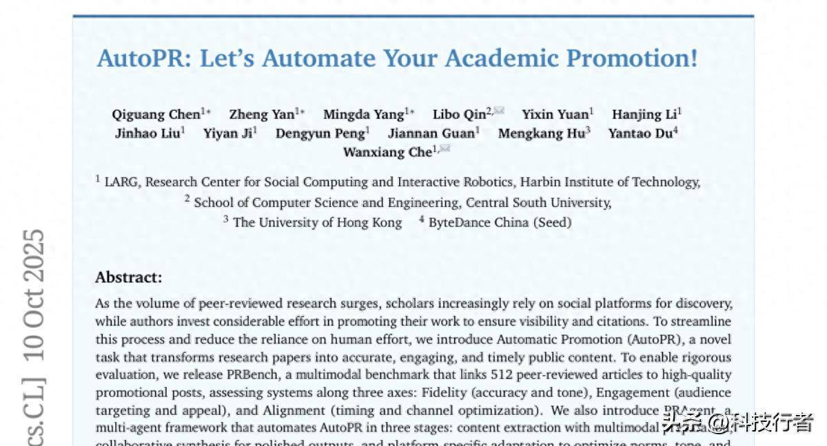 学术圈的朋友们,你们有没有为写论文推广文案而头疼过?发表了辛苦的研究成果,却不知道如何在社交媒体上吸引大家的注意?哈尔滨工业大学社会计算与交互机器人研究中心的陈启光、严政、杨明达等研究者在2025年10月发布了一项全新研究,为这个问题提供了革命性的解决方案。这项研究发表在arXiv预印本平台上,论文编号为2510.09558v1,感兴趣的读者可以通过这个编号查询完整论文。